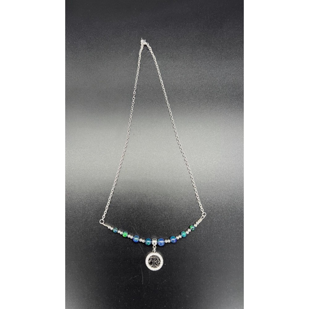 Ce bijou est composé d’une superbe opale noire d'Australie (qualité AAA), reconnue pour ses nuances profondes et chatoyantes, montée sur un pendentif Arbre de Vie finement travaillé, symbole universel de force, protection, harmonie et croissance.