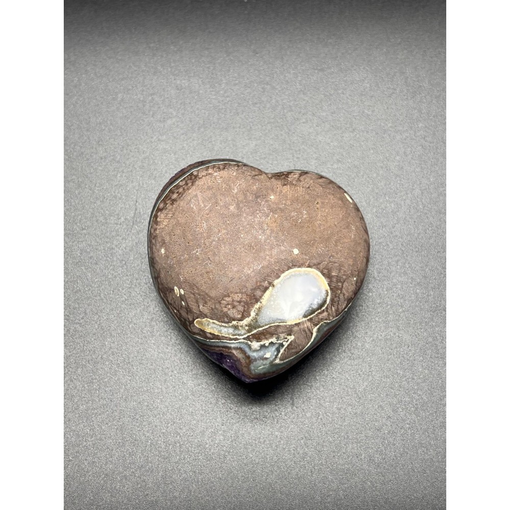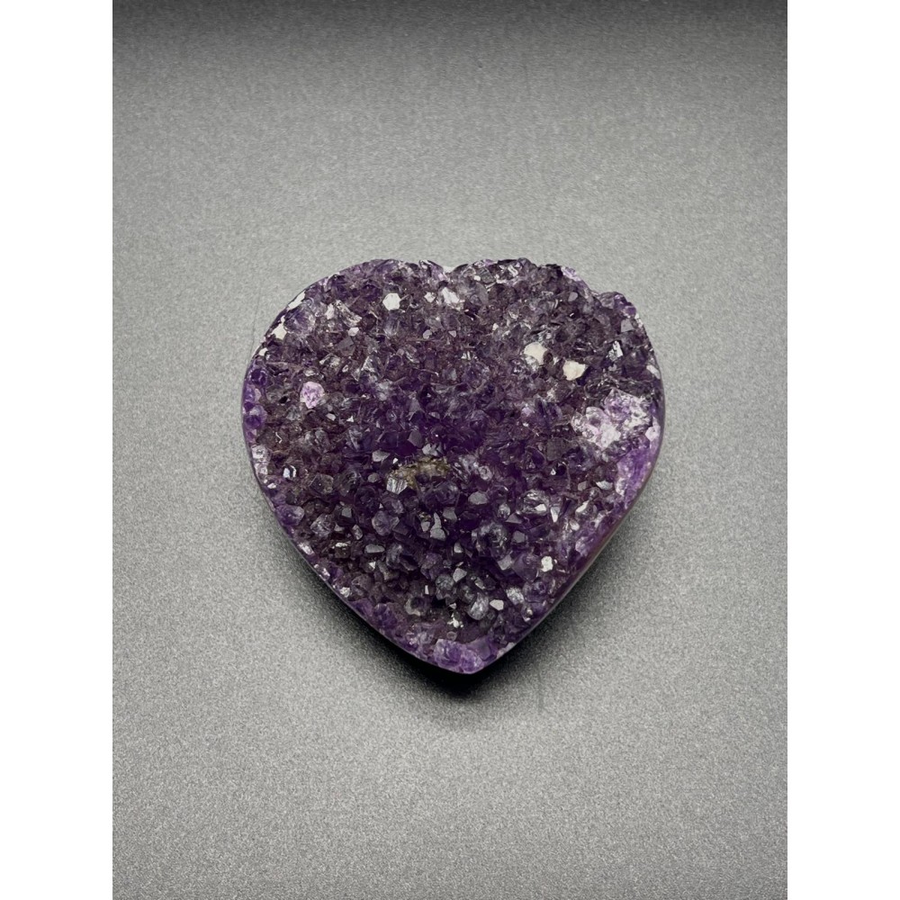 Découvrez cette magnifique géode cœur en améthyste, travaillée à partir d’une améthyste d’Uruguay reconnue pour sa profondeur de couleur et sa pureté.