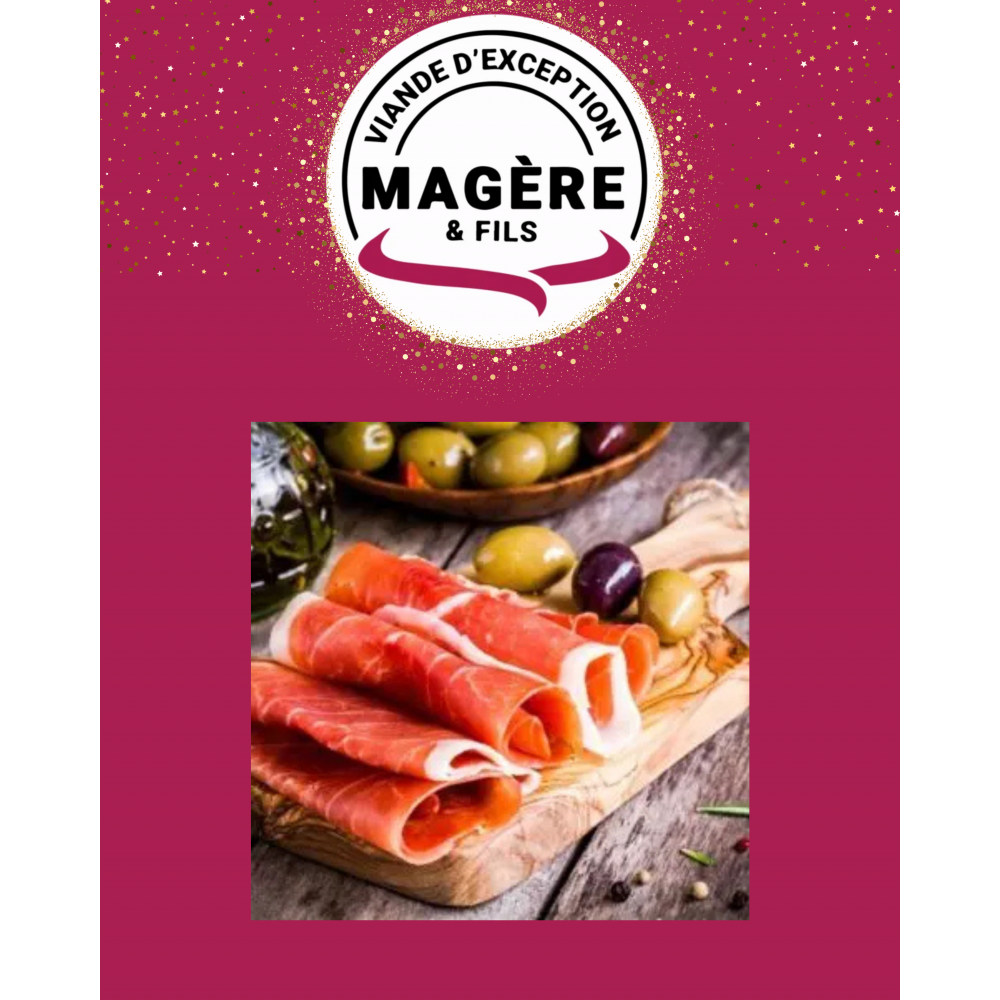 Savourez l’authenticité du Jambon Serrano Grande Réserve 200 g, une charcuterie espagnole d’exception affinée longuement pour offrir une texture fondante et une saveur intense. Tranché finement, il est idéal pour composer un apéritif raffiné, un plateau de charcuterie ou sublimer vos entrées festives.