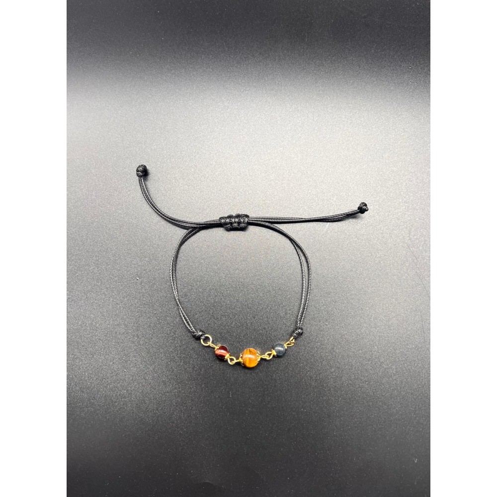 Ce bracelet en cordon noir réglable combine trois pierres naturelles puissantes : œil de tigre, œil de taureau et œil de faucon. Chaque pierre est soigneusement sélectionnée pour sa qualité et ses vertus protectrices et énergétiques.