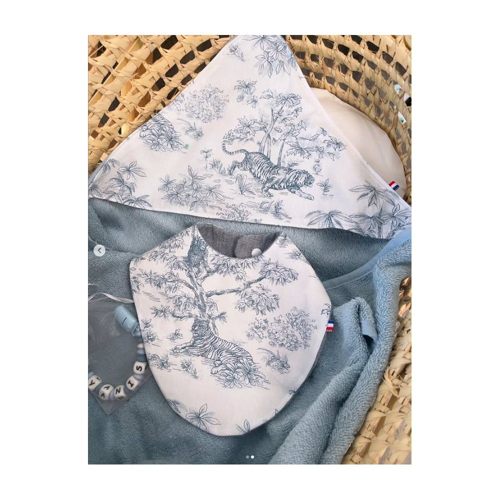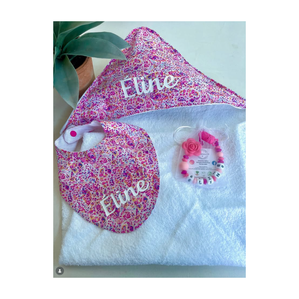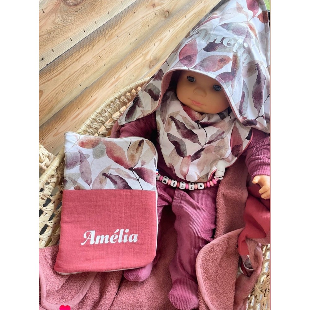 Enveloppez bébé de douceur à la sortie du bain avec cette cape fabriquée à la main. Avec son format pratique de 75 x 75 cm et son motif original de feuilles dans les tons vieux rose et prune, elle est parfaite pour garder bébé bien au chaud. C’est un accessoire indispensable et original, bien plus chaleureux que les modèles classiques. Sa capuche permet de sécher délicatement la tête de bébé pour éviter qu'il ne prenne froid.