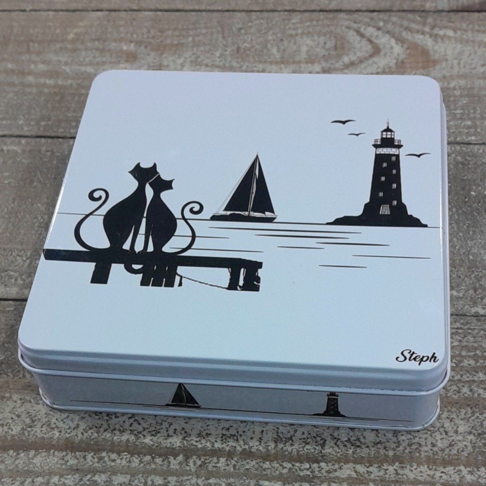 Boîte en métal décorée 14,5x14,5x 3cm, au choix